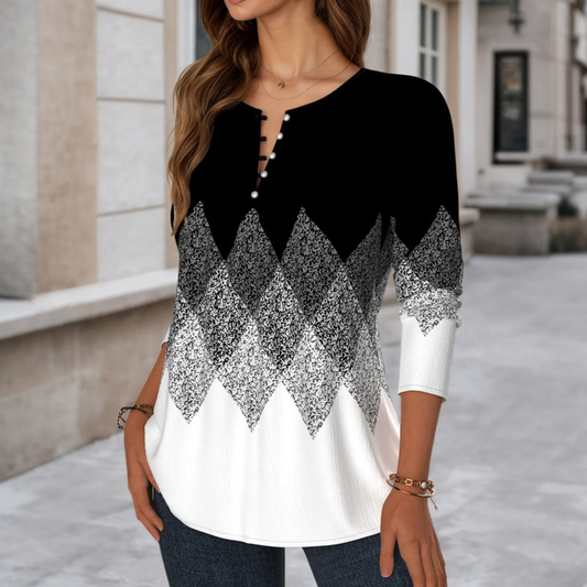 Blouse Vintage à Blocs de Couleur à Manches Longues
