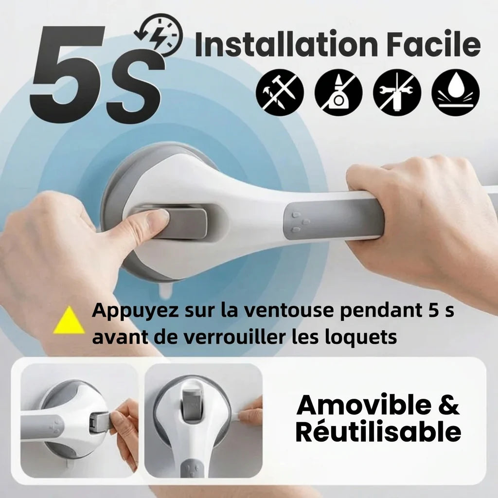 Der Sturzschutzgriff ist ein unverzichtbares Hilfsmittel, um Sturzgefahren vorzubeugen, insbesondere in sensiblen Bereichen wie dem Badezimmer und der Toilette. Für die Montage sind keine Werkzeuge erforderlich. Dank seines innovativen Saugnapfsystems müssen Sie ihn lediglich an der gewünschten Stelle anbringen, den Saugnapf arretieren und können sofort von einem sicheren Halt profitieren.
