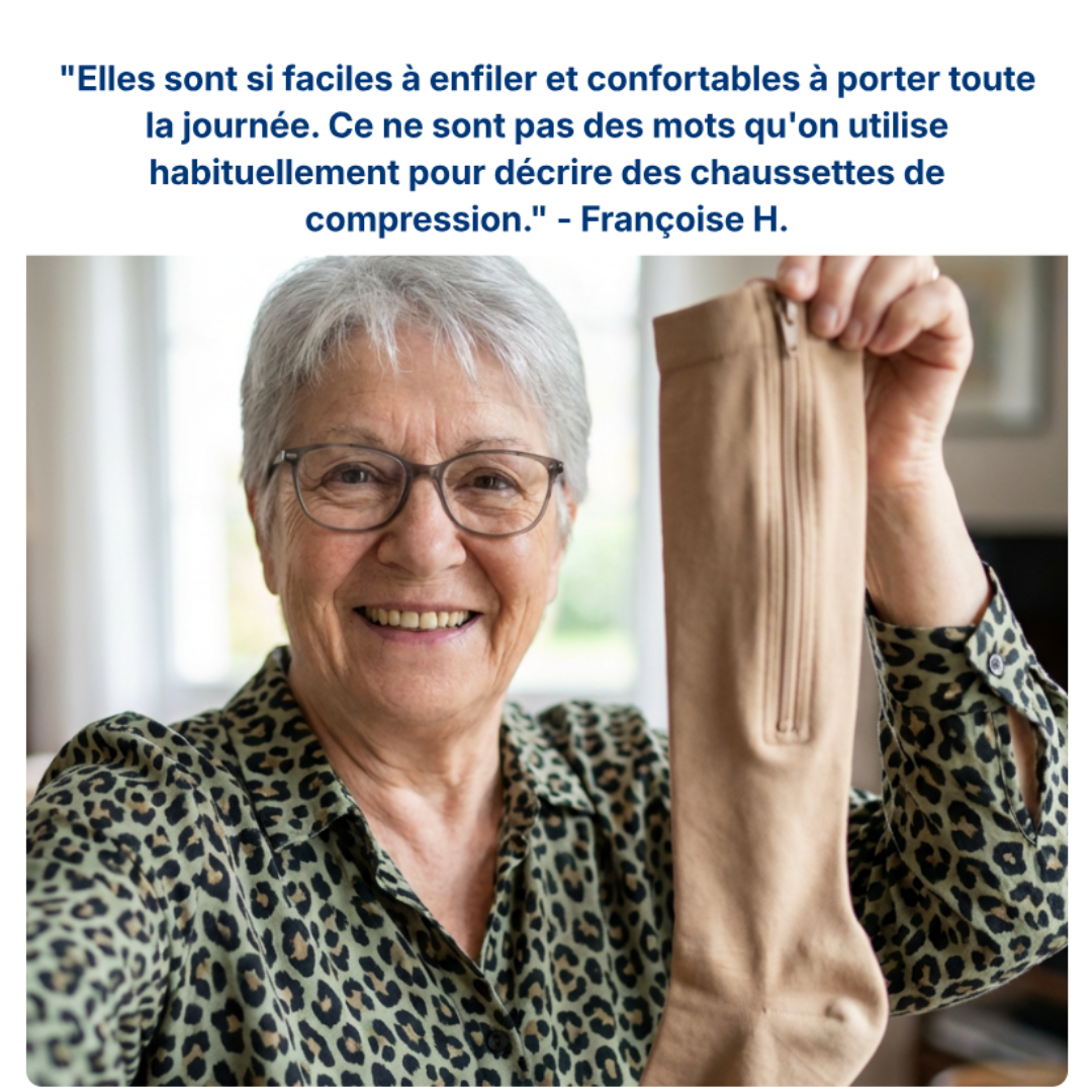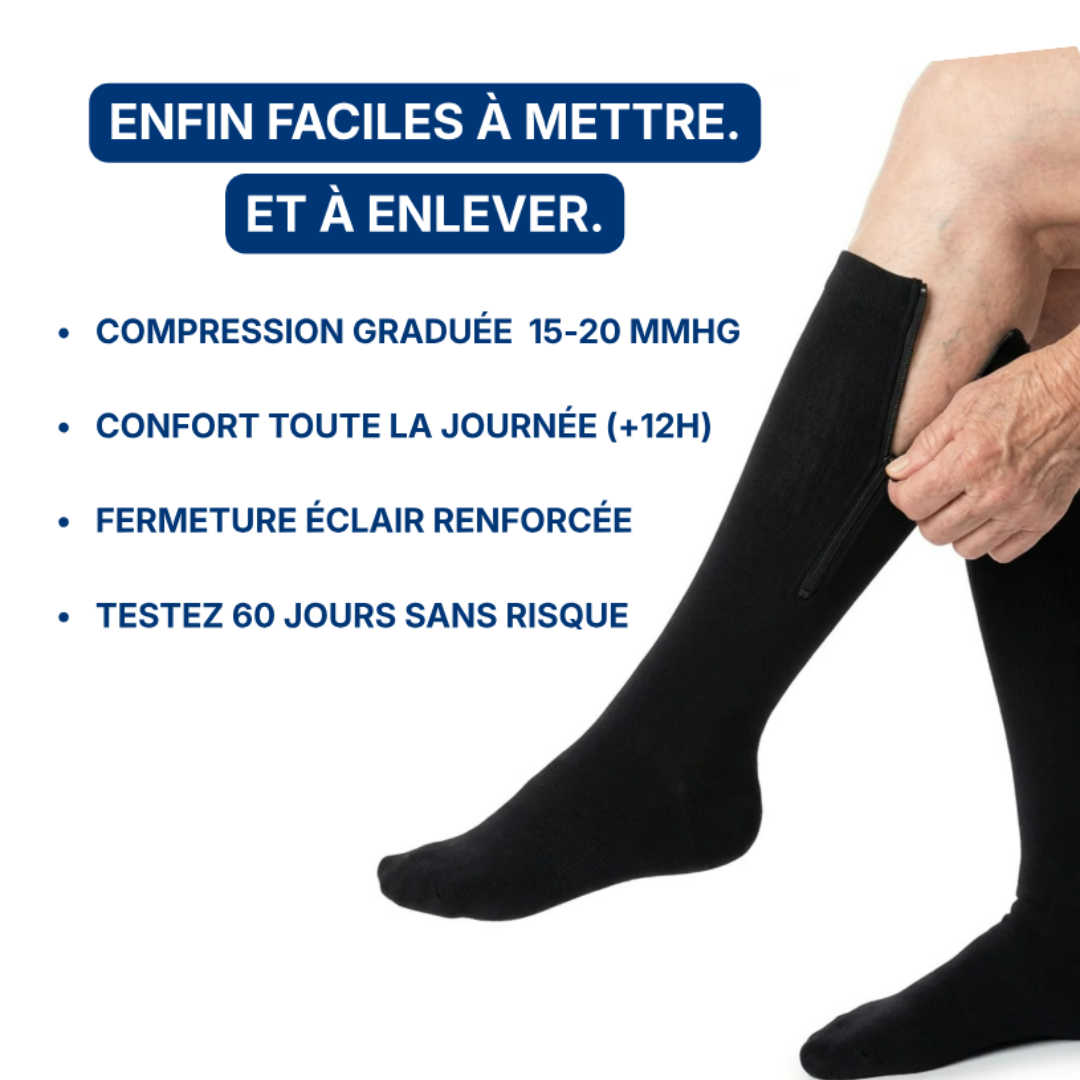 Kompressionsstrümpfe mit Reißverschluss sind die ideale Lösung für alle, die eine bequeme und einfach anzuwendende graduierte Kompression suchen. Dank ihres innovativen Designs mit verstärktem Reißverschluss lassen sich diese Strümpfe in nur 10 Sekunden schmerzfrei und mühelos an- und ausziehen.
