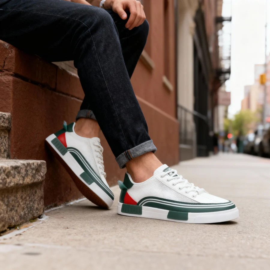 Die modernen Sportschuhe sind mit einem atmungsaktiven Mesh-Obermaterial ausgestattet, das für eine konstante Belüftung sorgt und sich ideal für aktive Tage eignet. Die leichte und dennoch robuste Konstruktion garantiert den ganzen Tag über absoluten Komfort, ganz gleich, wie schnell Sie unterwegs sind.