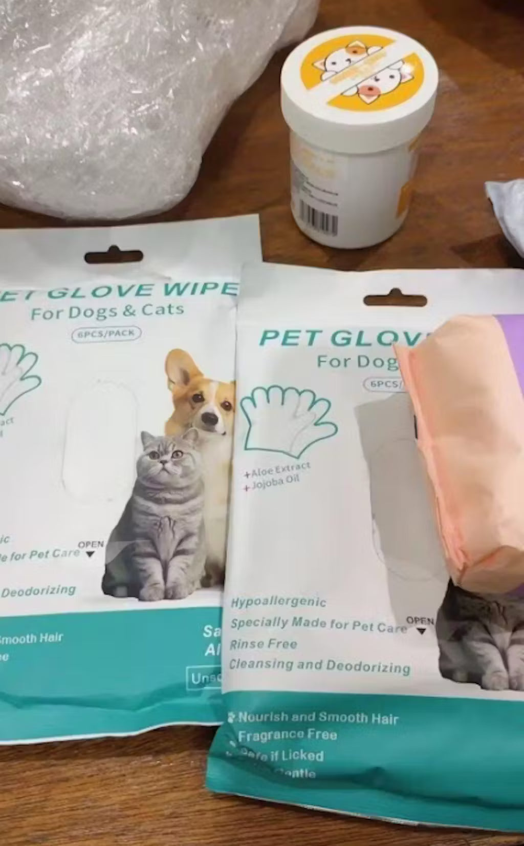 Jeder Handschuh ist mit einer milden, haut- und haarfreundlichen Reinigungslösung getränkt. Sie ist ideal für Hunde und Katzen und hilft, Feuchtigkeit zu spenden, zu erfrischen und nach der Anwendung einen angenehmen Duft zu hinterlassen.