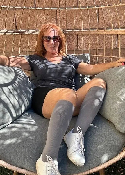Diese Socken mit abgestufter Kompression fördern eine bessere Blutzirkulation und lindern sofort das Gefühl von schweren Beinen. Sie sind so konzipiert, dass sie den ganzen Tag über einen bequemen Halt bieten und sind ideal für Personen, die lange stehen oder sitzen. Das weiche, elastische Gewebe passt sich perfekt an das Bein an, ohne es übermäßig zu komprimieren.