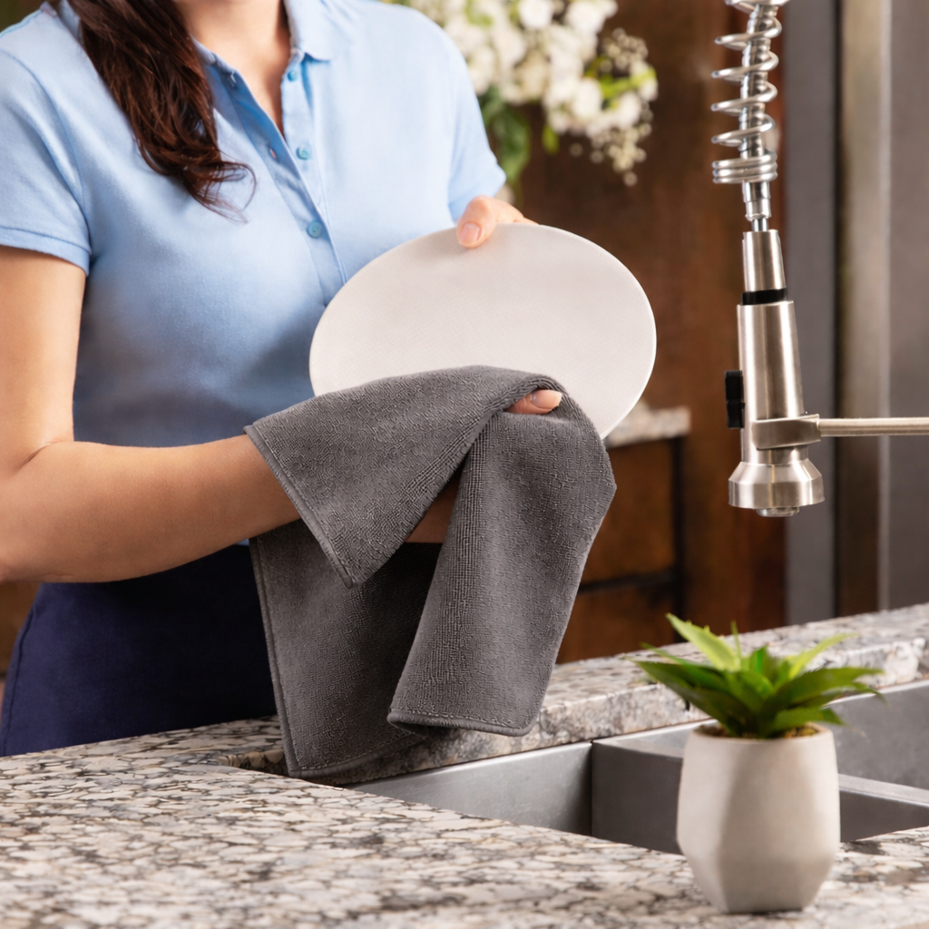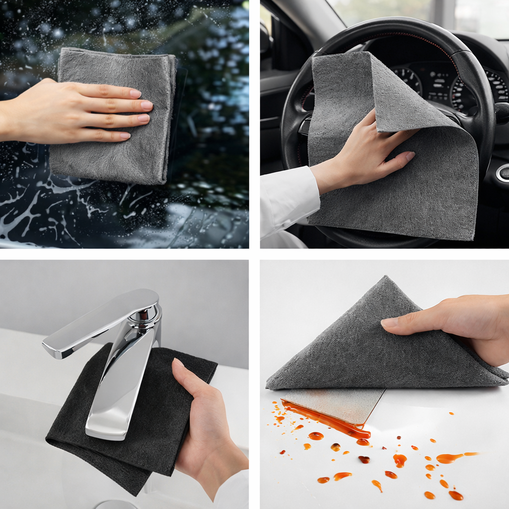 Ideal für Küche, Bad, Fenster oder Edelstahl, hinterlässt es jede Oberfläche sauber und glänzend. Dank seiner Saugfähigkeit trocknet es schnell und ohne Streifen.