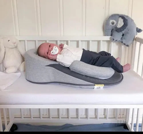 Dieses Kissen ist ab den ersten Monaten geeignet und hilft dem Baby, sich wie in einem Kokon gehalten zu fühlen. Es reduziert den Reflux, indem es eine sanfte Neigung fördert, schränkt plötzliche Bewegungen ein und hilft, besser zu schlafen. Es ist leicht und einfach zu transportieren und kann im Bett, in der Wippe oder bei Ausflügen verwendet werden.