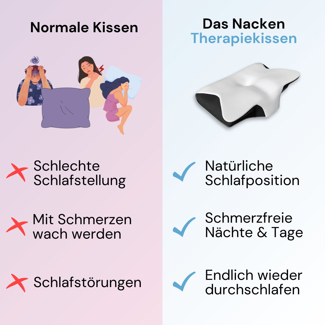 Das Nacken-Therapiekissen ist weit mehr als nur ein Kissen. Speziell entwickelt, um Ihre Schlafhaltung zu korrigieren, unterstützt und entlastet es die Halswirbelsäule und bietet eine effektive Lösung gegen Nacken-, Schulter- und Rückenschmerzen. Dank des Memory-Schaums passt es sich perfekt an Ihre Körperform an und sorgt für eine ruhige und erholsame Nacht.