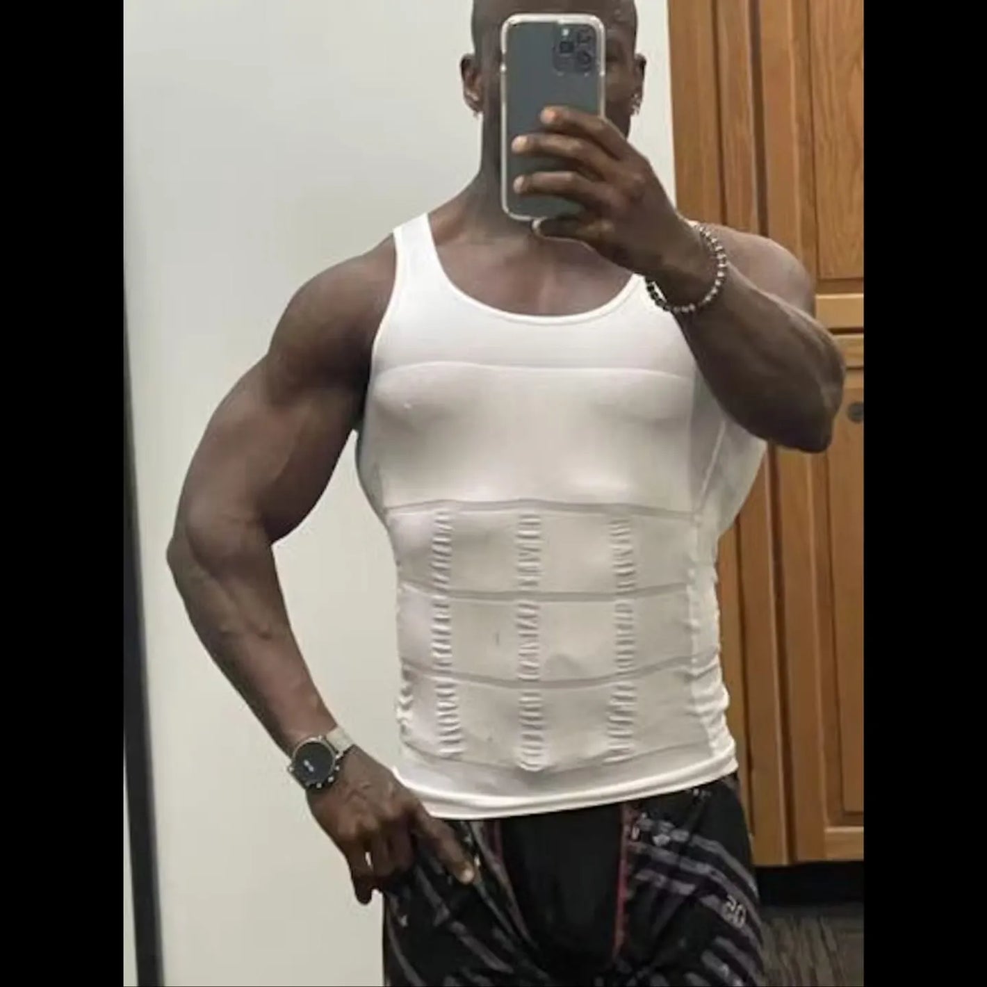 Dieses formende Tanktop für Männer verfeinert die Silhouette in Sekundenschnelle. Dank seines engen Schnitts und der gezielten Kompression reduziert es sichtbar den Bauch und formt den Oberkörper. Ideal unter einem Hemd oder T-Shirt für ein diskretes und natürliches Aussehen im Alltag.