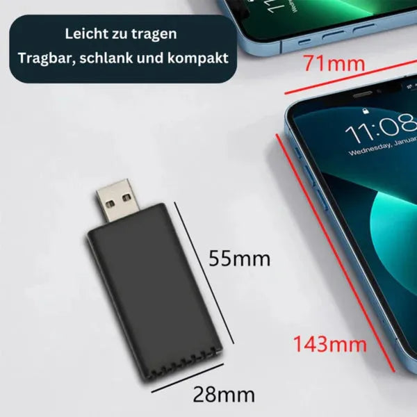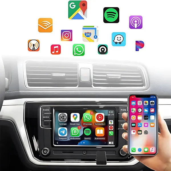 Mit dem EasyPlay Adapter verwandeln Sie Ihr Auto in ein smartes Multimedia-Zentrum. Schluss mit lästigen Kabeln - dieser kompakte Adapter verbindet Ihr Smartphone drahtlos mit Apple CarPlay oder Android Auto und sorgt für eine nahtlose Integration Ihrer Lieblings-Apps.