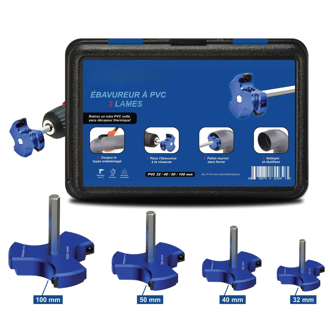Dank seiner 3 Klingen aus gehärtetem Stahl ist jeder Schnitt sauber und gleichmäßig. Der Entgrater verhindert Risse und Unregelmäßigkeiten und verlängert die Lebensdauer Ihrer Fittings.