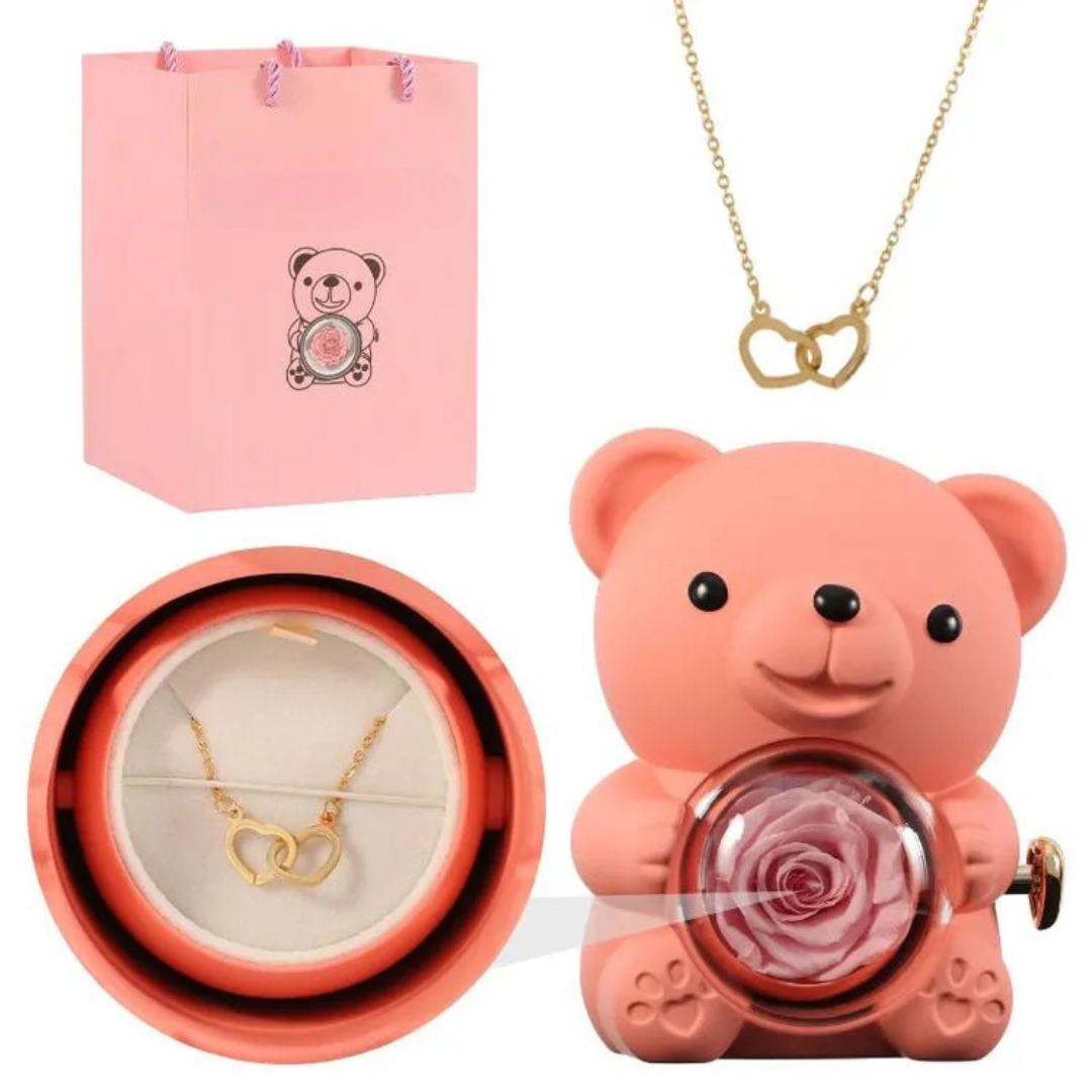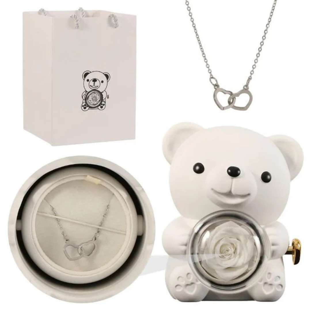 Rotbärenschrein & Halskette mit Ewiger Rose, personalisiert