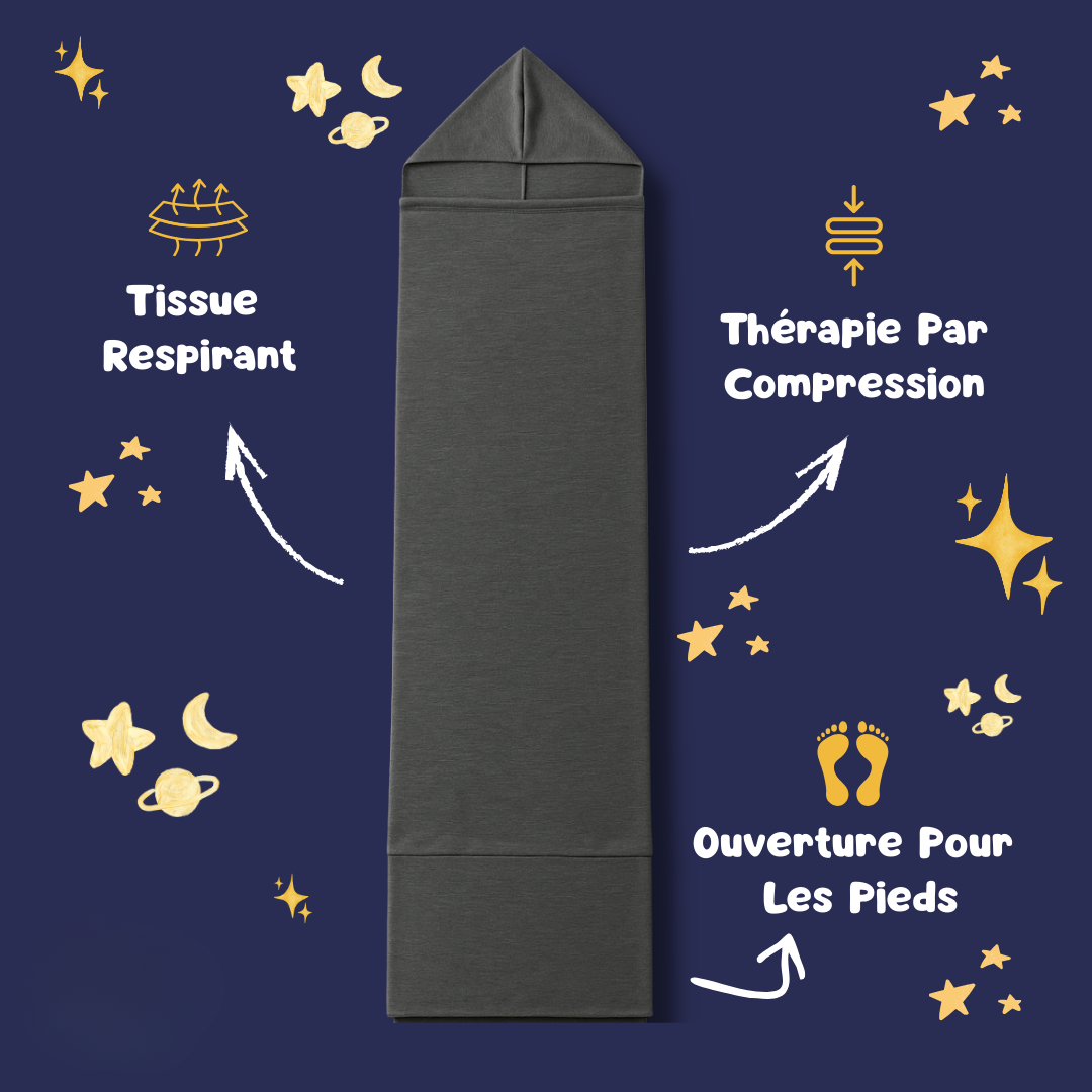 Dieser umhüllende Schlafsack wurde entwickelt, um dem Kind ein Gefühl der Geborgenheit zu vermitteln, das dem elterlichen Kontakt nahekommt. Sein Kokon-Effekt hilft, Spannungen beim Zubettgehen abzubauen und fördert ein ruhigeres Einschlafen, selbst in den ersten Nächten außerhalb des Elternbettes.