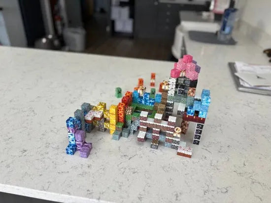 Fördern Sie die Kreativität Ihrer Kinder mit diesem Baukasten, der von Pixelwelten inspiriert ist. Mit seinen bunten, leicht zusammensetzbaren Bausteinen bietet es ein ideales Terrain, um Strukturen zu erfinden, Logik zu entwickeln und die Feinmotorik zu trainieren. Fernab von Bildschirmen bietet es eine spielerische Aktivität, die die Aufmerksamkeit fesselt und gleichzeitig die Fantasie anregt.