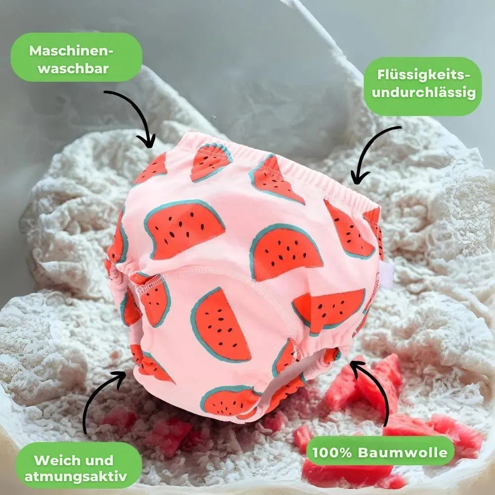 Diese süßen Trainingshöschen begleiten Kinder sanft durch die Phase der Töpfchentrainings. Das weiche Baumwollmaterial sorgt für hohen Tragekomfort, während die saugfähige Innenschicht kleine Missgeschicke zuverlässig auffängt. Mit dem fröhlichen Wassermelonenmuster wird das Anziehen zum Spaß.