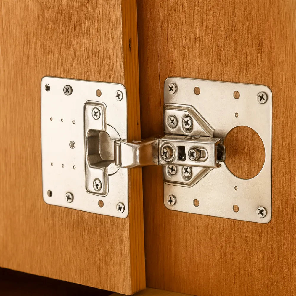 Hergestellt aus widerstandsfähigem Metall, bietet dieses Set einen festen Halt, der sich mit der Zeit nicht lockert. Es verstärkt die durch Abnutzung brüchig gewordenen Befestigungspunkte und sorgt für eine bessere Gewichtsverteilung auf Ihren Schrank- oder Küchentüren. Da es für die meisten Holzmöbel geeignet ist, garantiert es eine universelle Lösung.