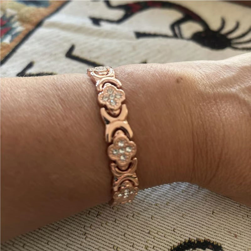 Dieses elegante Kupferarmband vereint stilvolle Optik mit traditionellem Nutzen. Durch seine feine Verarbeitung passt es sowohl im Alltag als auch zu besonderen Anlässen. Das warme Farbspiel des Kupfers verleiht dem Armband eine zeitlose Eleganz, die sich harmonisch zu jedem Look kombinieren lässt.