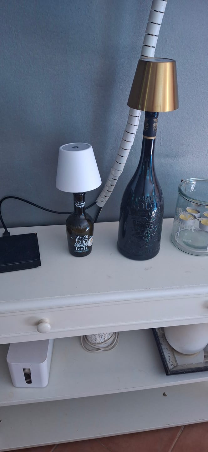 Die Lampe ist kompakt und kabellos, lässt sich überall hin mitnehmen und in wenigen Sekunden aufstellen. Ihr robustes Metallgehäuse garantiert Widerstandsfähigkeit und Langlebigkeit. Sie vereint Zweckmäßigkeit, Ästhetik und Kreativität, sodass Sie Ihren Flaschen ein zweites Leben geben und gleichzeitig Ihre Räume beleuchten können.