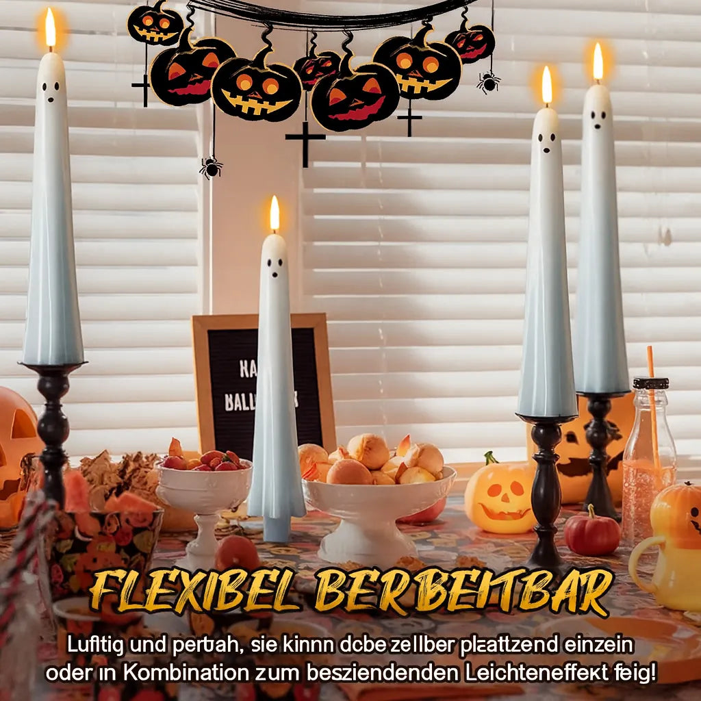 Diese eleganten LED-Kerzen in Geisterform verwandeln jedes Zuhause in eine geheimnisvolle Kulisse. Das realistische Flackern erzeugt den Eindruck einer echten Flamme, ohne Rauch oder Brandgefahr. Ideal für Wohnzimmer, Fensterbank oder als Highlight auf dem Partytisch.