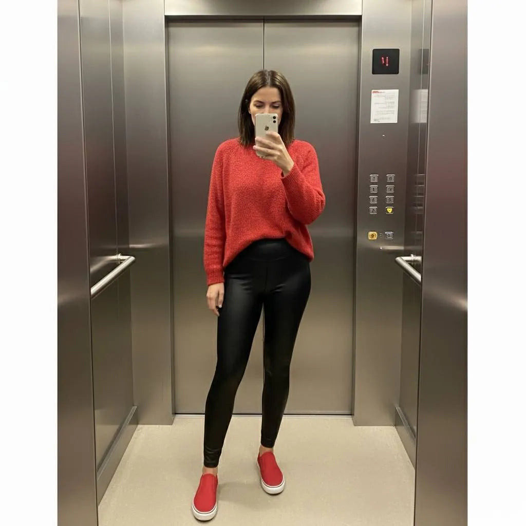 Diese Leggings in Lederoptik verschönert die Silhouette und bietet gleichzeitig absolute Bewegungsfreiheit. Der hohe Bund stützt den Bauchgürtel und lässt die Taille sichtbar schlanker wirken. Das weiche, elastische Material passt sich jeder Kurve an, ohne zu drücken, und sorgt so für einen eleganten, femininen Look in jeder Situation.