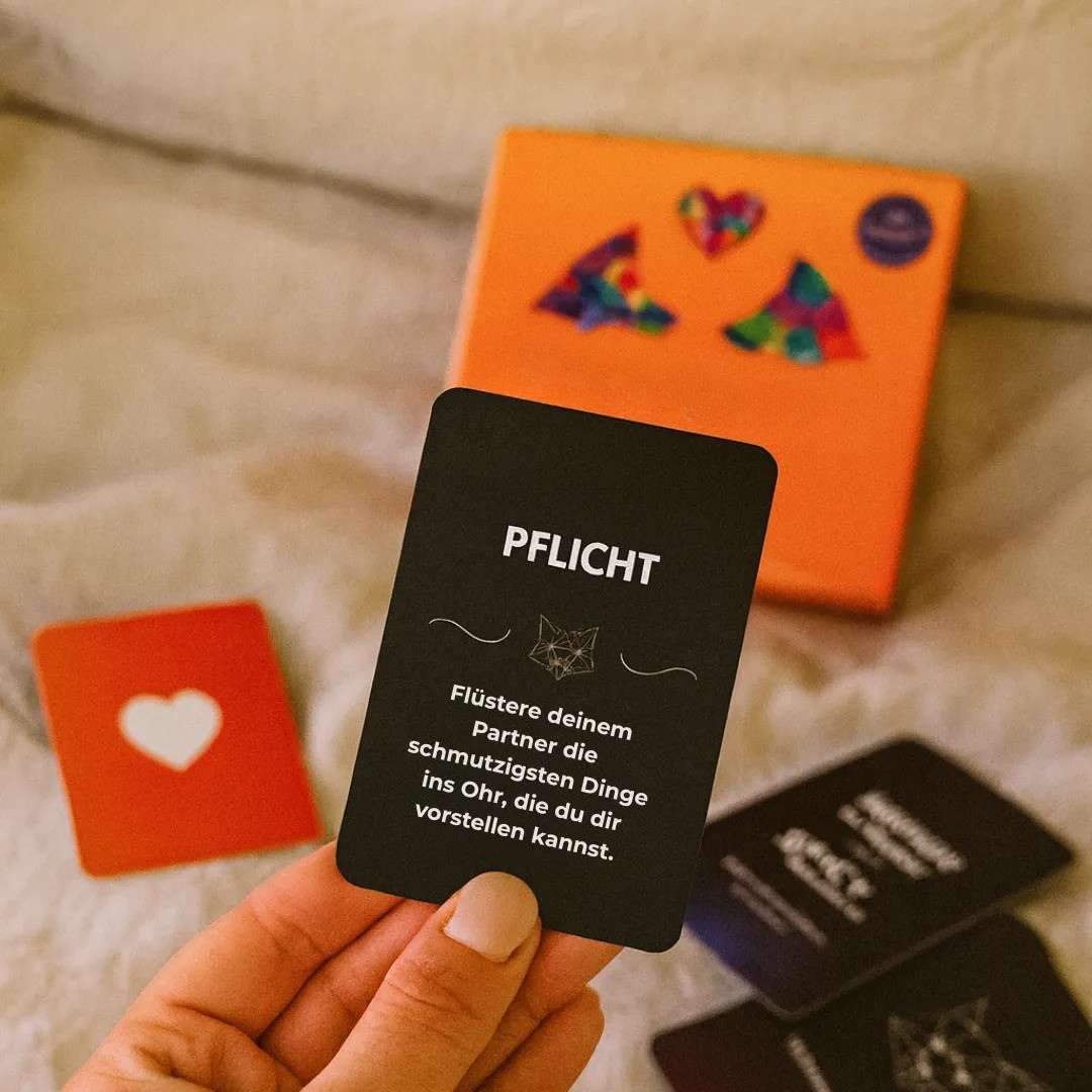 Im Set enthalten sind zwei verschiedene Kartenspiele - eines für intime Gespräche, das andere für sinnliche Herausforderungen. Zusammen bilden sie das perfekte Geschenk für Paare, die sich wieder näherkommen möchten.