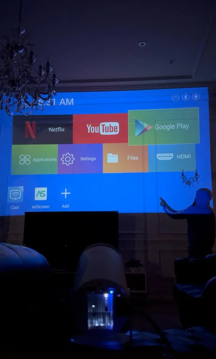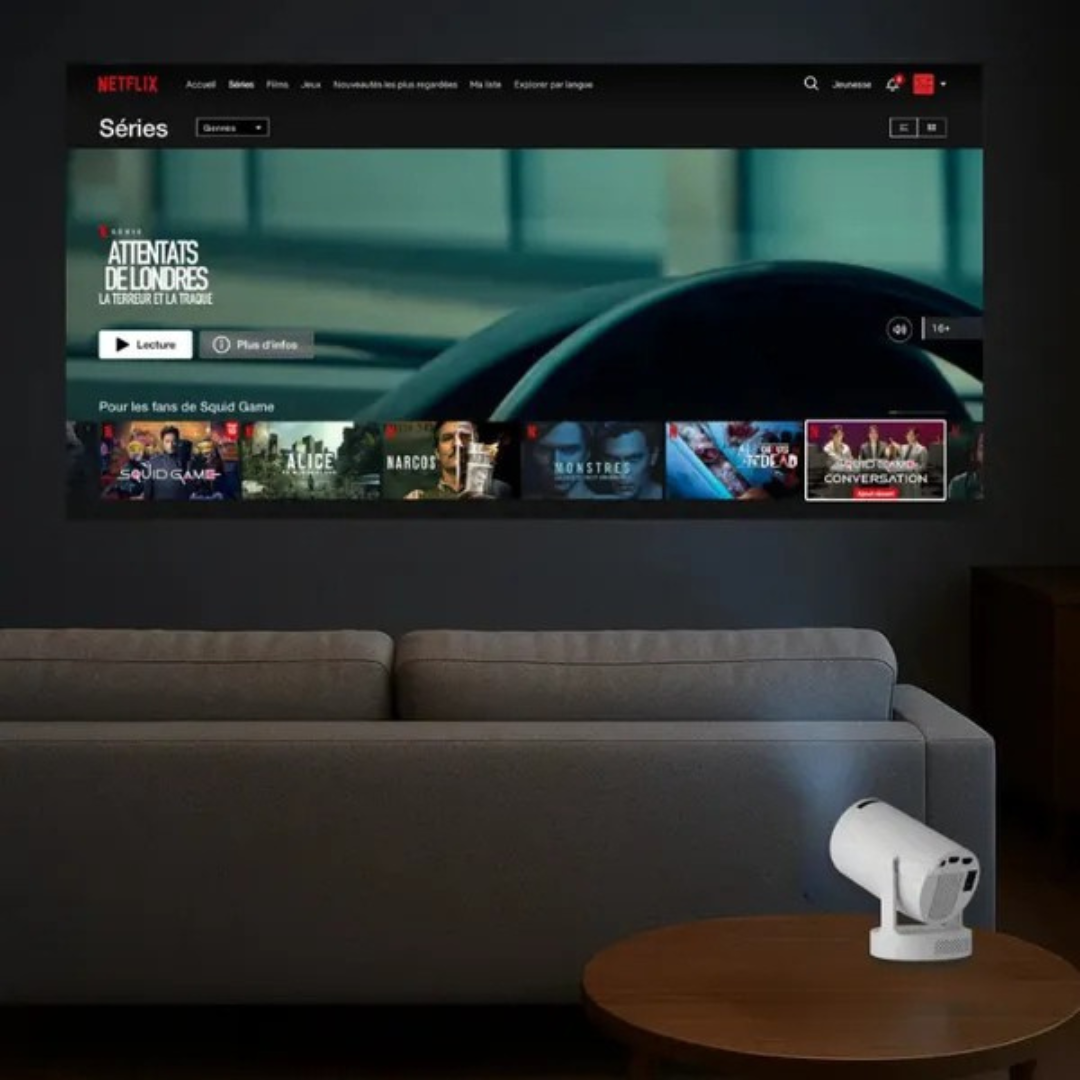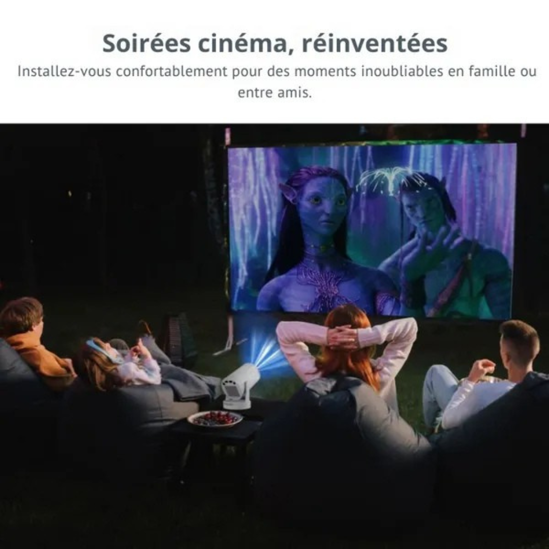 Verwandeln Sie Ihr Wohnzimmer, Schlafzimmer oder sogar Ihren Garten in einen echten Kinosaal. Dank seiner kompakten Größe und des leichten Designs lässt sich dieser Beamer leicht transportieren, sodass Sie Ihre Lieblingsfilme und -serien überall genießen können.