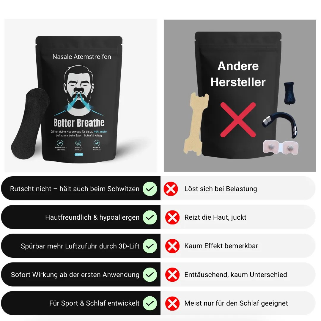 ✔️ Öffnet die Nasengänge für bis zu 40 % mehr Luft