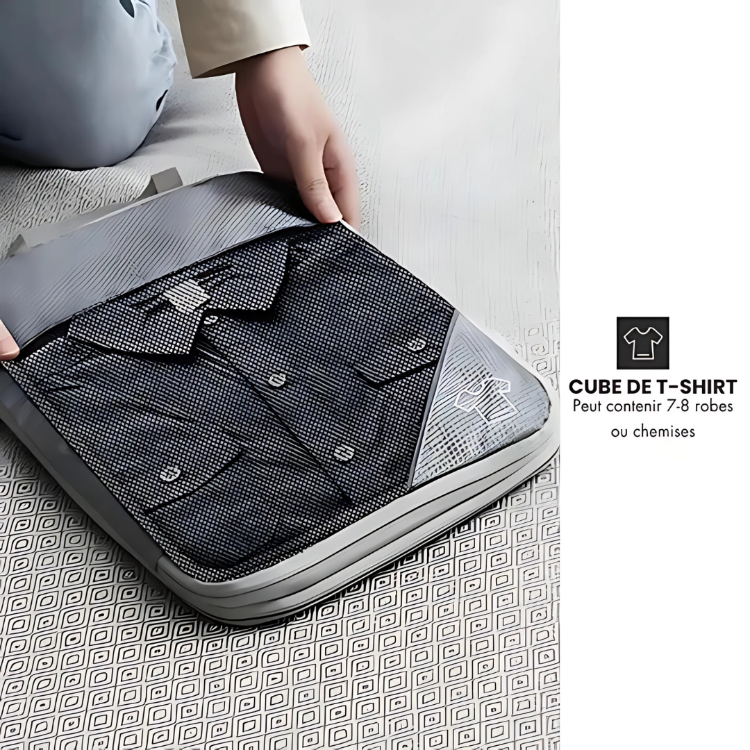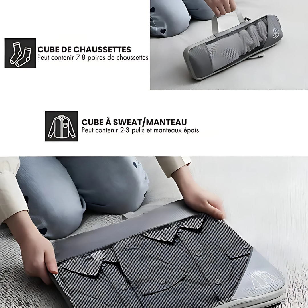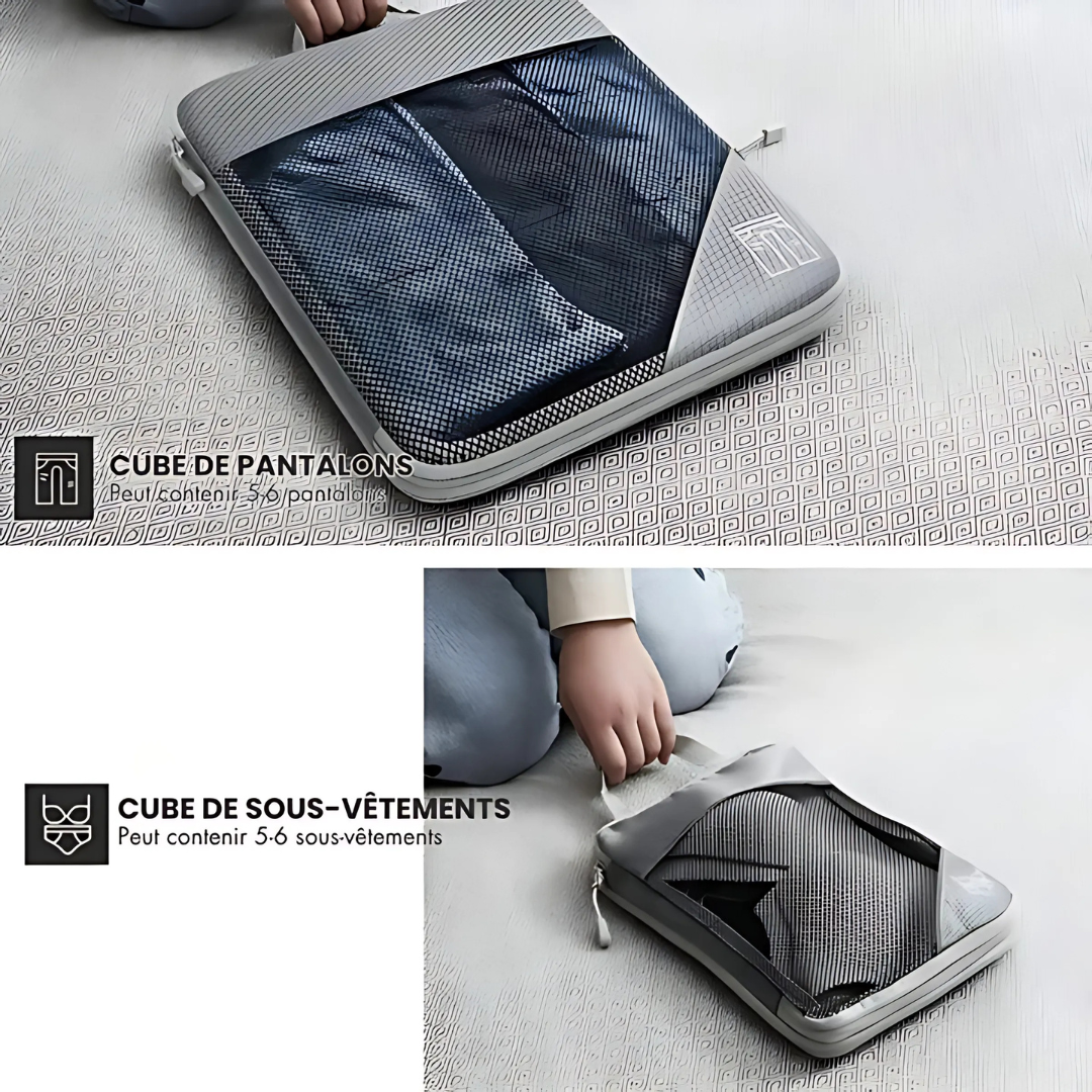 Dank ihres ausgeklügelten Designs reduzieren diese komprimierbaren Aufbewahrungswürfel das Volumen Ihrer Kleidung. Sie sparen mühelos bis zu 80 % an Platz und sorgen so für eine optimale Organisation auf Ihren Reisen.