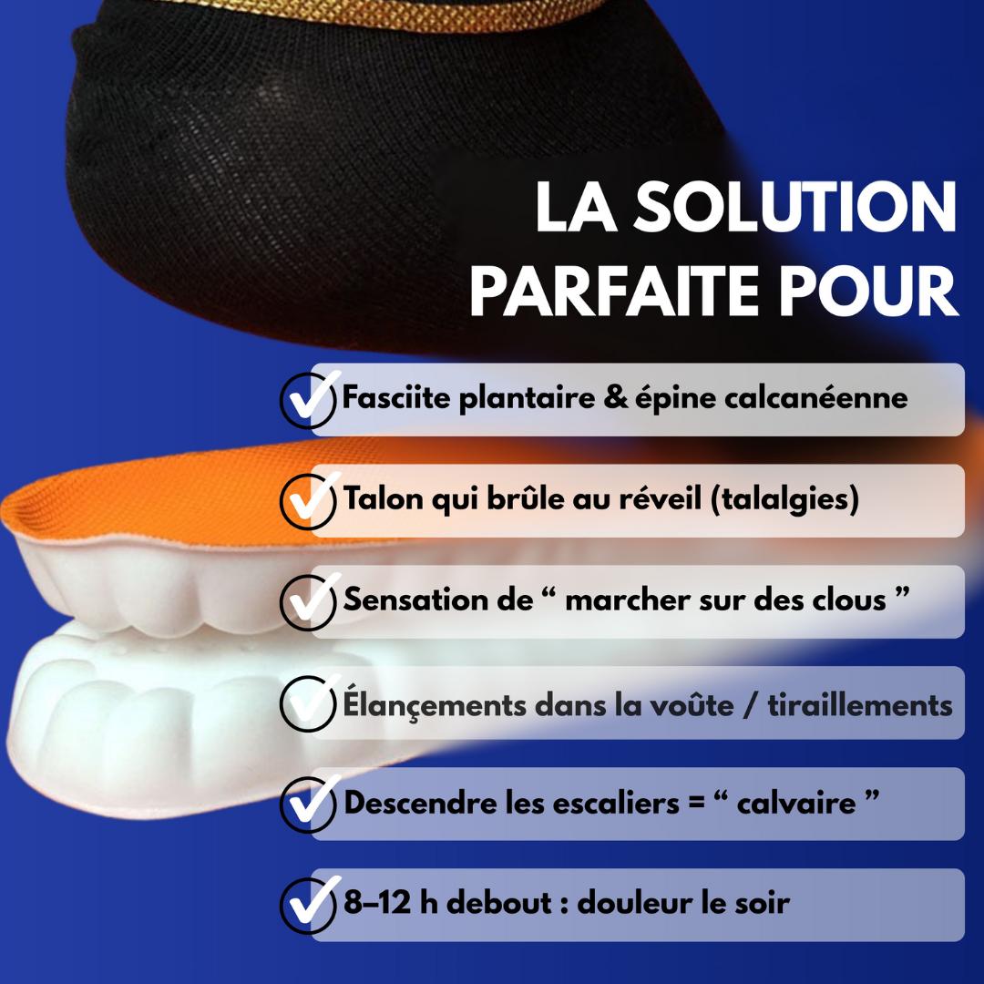 Gönnen Sie Ihren Füßen den Komfort, den sie verdienen, mit unseren Relax-Einlegesohlen. Sie wurden speziell zur Linderung von Schmerzen und Müdigkeit entwickelt und sind ideal nach einem langen Tag oder für Menschen mit Fußsohlenschmerzen. Ihre innovative Technologie bietet Ihren Füßen den ganzen Tag über zusätzlichen Halt.