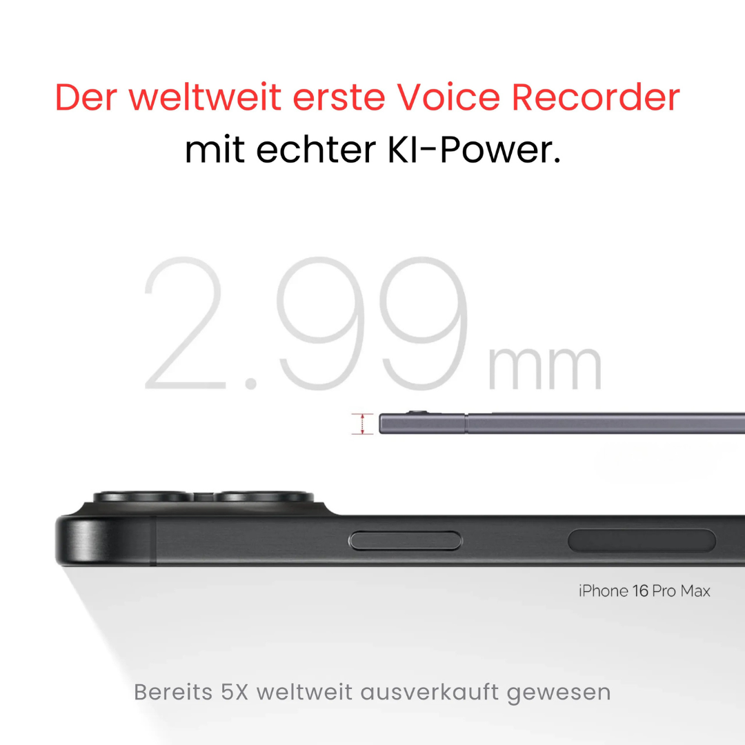 Mit seinem kompakten Design und seiner intuitiven Bedienung wird SmartNotes Pro zum unverzichtbaren Werkzeug für Arbeit und Freizeit. Die KI erkennt Sprache in mehreren Dialekten, wandelt sie präzise in Text um und speichert alle Ihre Daten lokal, um Ihre Privatsphäre zu schützen.