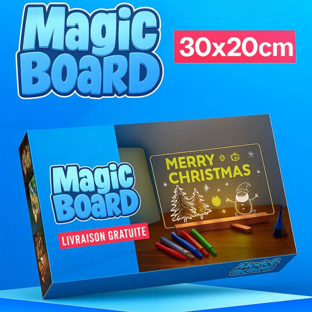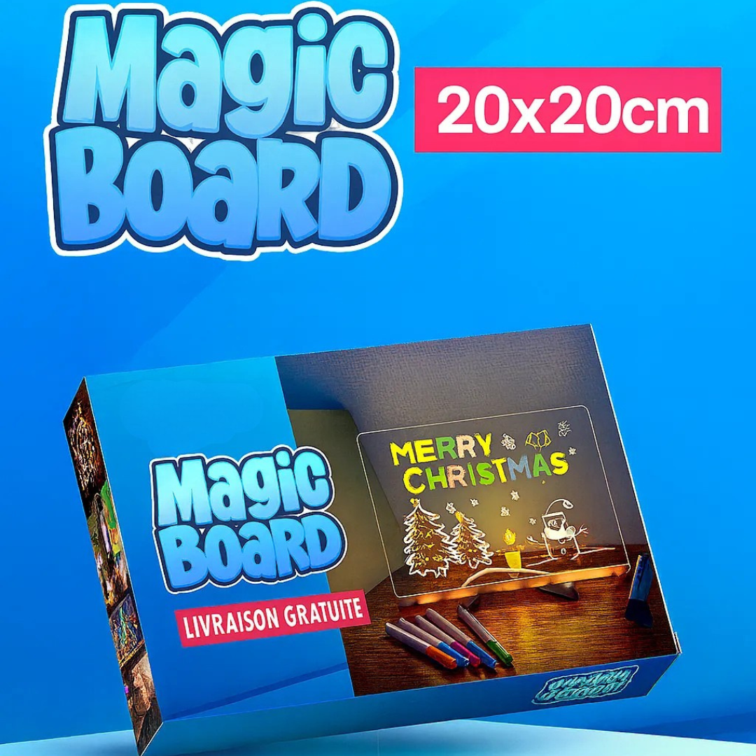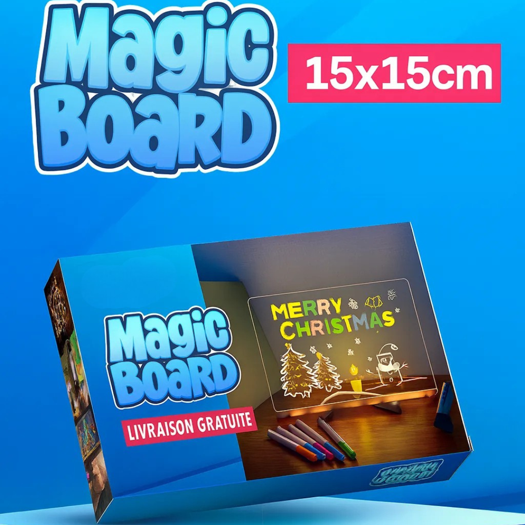 Sie ist in zwei Größen erhältlich (15x15 cm oder 30x20 cm) und eignet sich sowohl für kleine Hände als auch für angehende junge Künstler. Ideal für unterwegs, in ruhigen Momenten zu Hause oder sogar als Geburtstagsgeschenk. So wird jede Sitzung zu einem einzigartigen Lichtabenteuer!