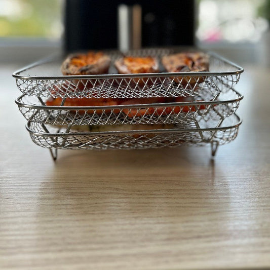 3er Set Stapelbare Körbe für Airfryer + 2 Zangen GRATIS