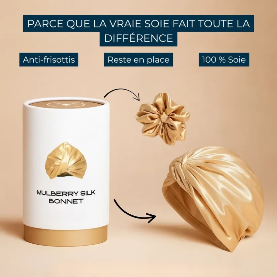 Realizzato in seta di gelso di alta qualità, ha una consistenza liscia che riduce l'attrito e aiuta a trattenere l'idratazione naturale delle lunghezze. I ricci rimangono definiti, i capelli lisci conservano la loro lucentezza e il cuoio capelluto beneficia di un comfort incomparabile.