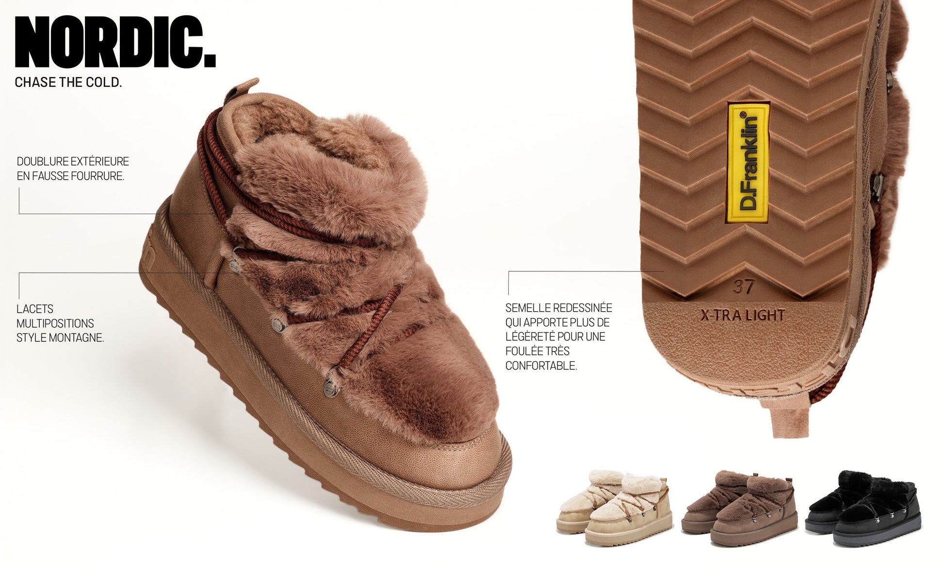 Gli scarponi NORDIC TRK FUR LOW BROWN combinano comfort e design nordico per le vostre avventure invernali. Realizzati con una morbida fodera in pelliccia sintetica, offrono un perfetto isolamento dal freddo pur rimanendo eleganti.