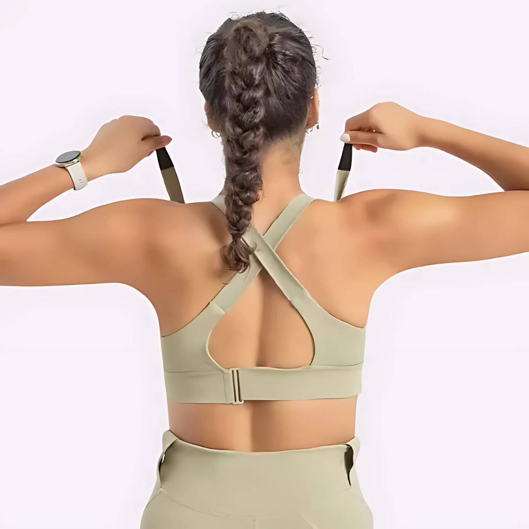 Grazie alla sua struttura incrociata nella parte posteriore, questo reggiseno offre fino al 90% di sostegno in più rispetto a un modello tradizionale. Distribuisce il peso in modo uniforme per alleviare la pressione sulle spalle, fornendo al contempo un sostegno efficace al seno.