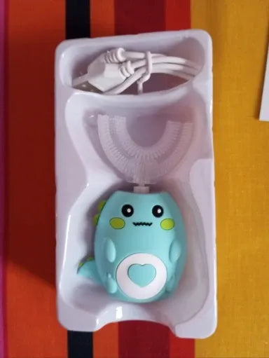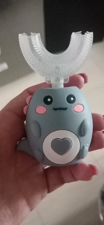 Questo spazzolino a 360° è stato appositamente progettato per rendere lo spazzolamento divertente ed efficace. Grazie alla sua forma ergonomica a U, si adatta perfettamente ai denti dei bambini e pulisce contemporaneamente tutte le superfici. Per i bambini è più facile adottare una routine di igiene orale senza sforzo e senza fatica.