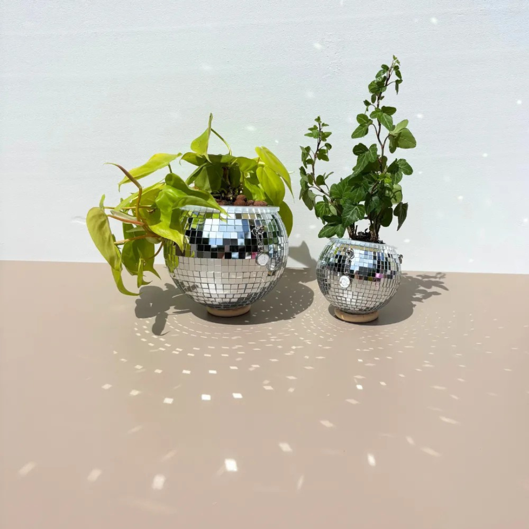 Questa fioriera scintillante trasforma immediatamente la vostra casa in uno spazio vibrante e di tendenza. Grazie alla sua superficie riflettente a forma di palla da discoteca, cattura la luce naturale e diffonde una luce scintillante sulle pareti, creando un ambiente allegro e moderno.