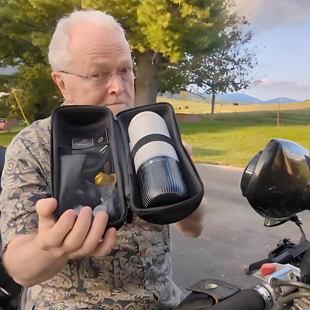 Realizzata con materiali durevoli, è facile da pulire e resistente agli urti. Nessun cavo, nessun inutile spreco di plastica, solo caffè puro e una macchina affidabile. Fornita con una borsa per il trasporto, si adatta a qualsiasi borsa.