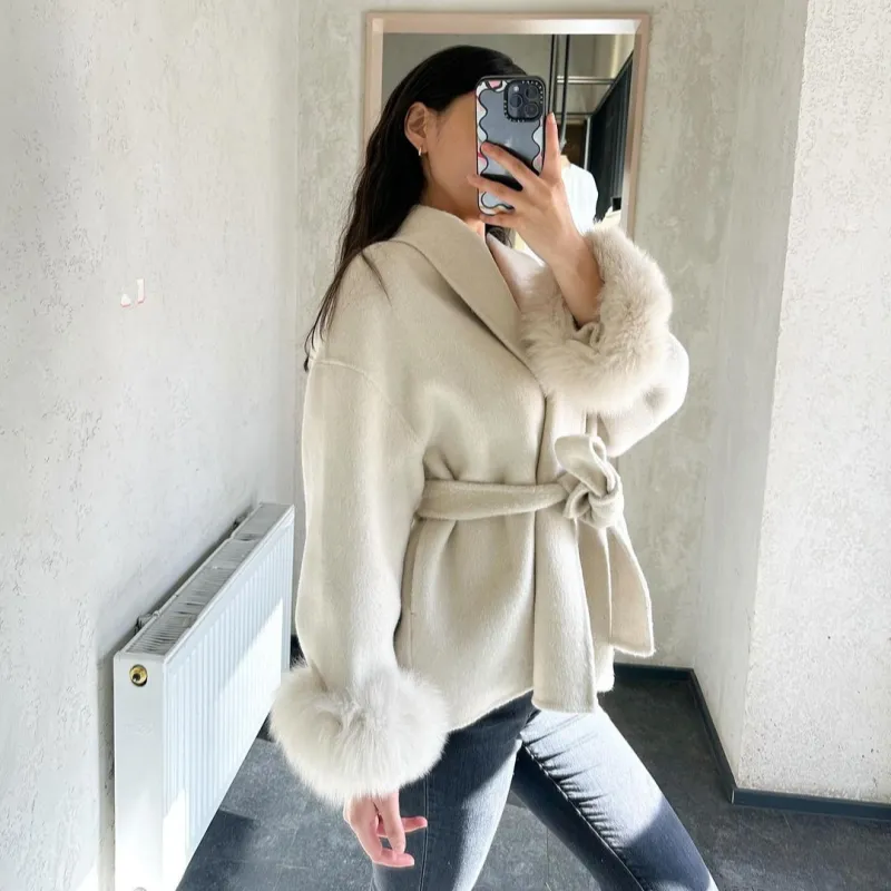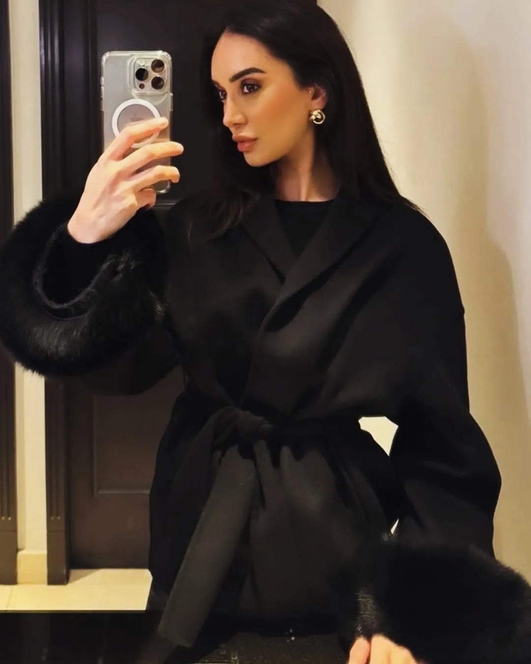 Cardigan elegante, adoro il taglio con cintura. Tessuto morbido, ideale per l'inverno.