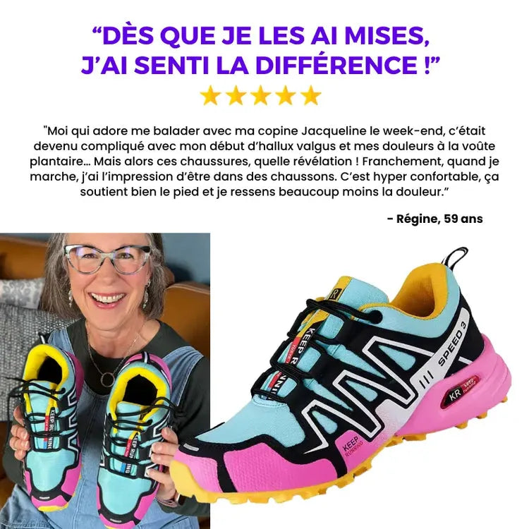 Progettate per le donne che soffrono di dolori plantari, alluce valgo o affaticamento cronico, queste scarpe offrono un sostegno mirato e favoriscono una postura naturale ed eretta.