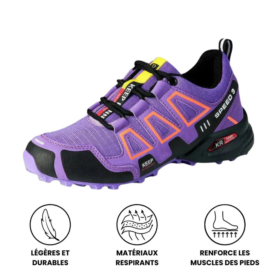 La struttura interna segue la forma naturale del piede, riducendo l'attrito ed evitando i punti di pressione. Il materiale traspirante consente di indossarle per lunghi periodi senza surriscaldarsi. La suola antiscivolo offre una maggiore sicurezza su tutti i terreni, ideale per lunghe giornate di camminate o attività all'aperto.
