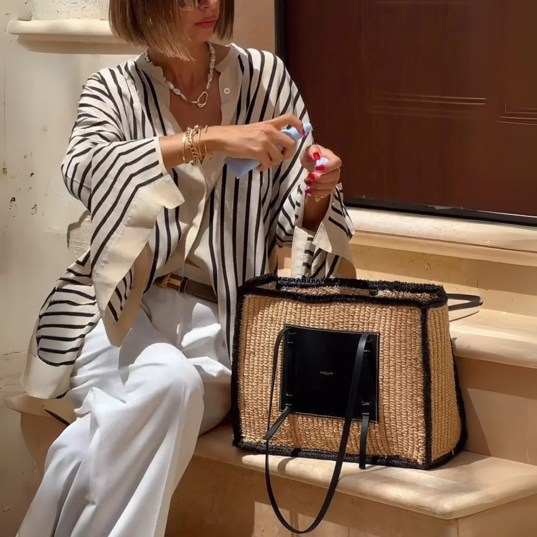 Con pantaloni fluidi, jeans a vita alta o pantaloncini di lino, questo capo si abbina a ogni stile. La sua stampa discreta ma strutturata consente abbinamenti semplici ma eleganti, ideali per ogni stagione.