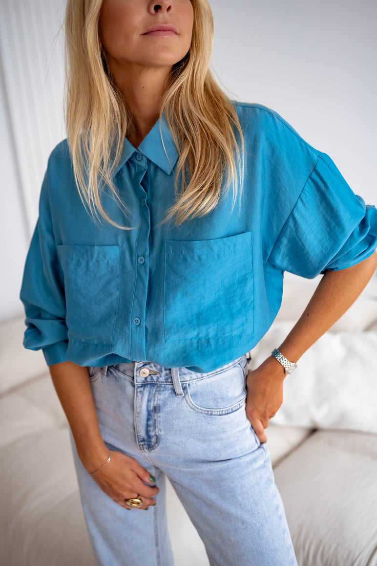 La camicia Taiba ha una vestibilità ampia e fluida che si adatta a tutte le forme del corpo. Il suo vivace colore blu aggiunge un tocco di freschezza al vostro abbigliamento, perfetto per una giornata casual o una serata elegante.