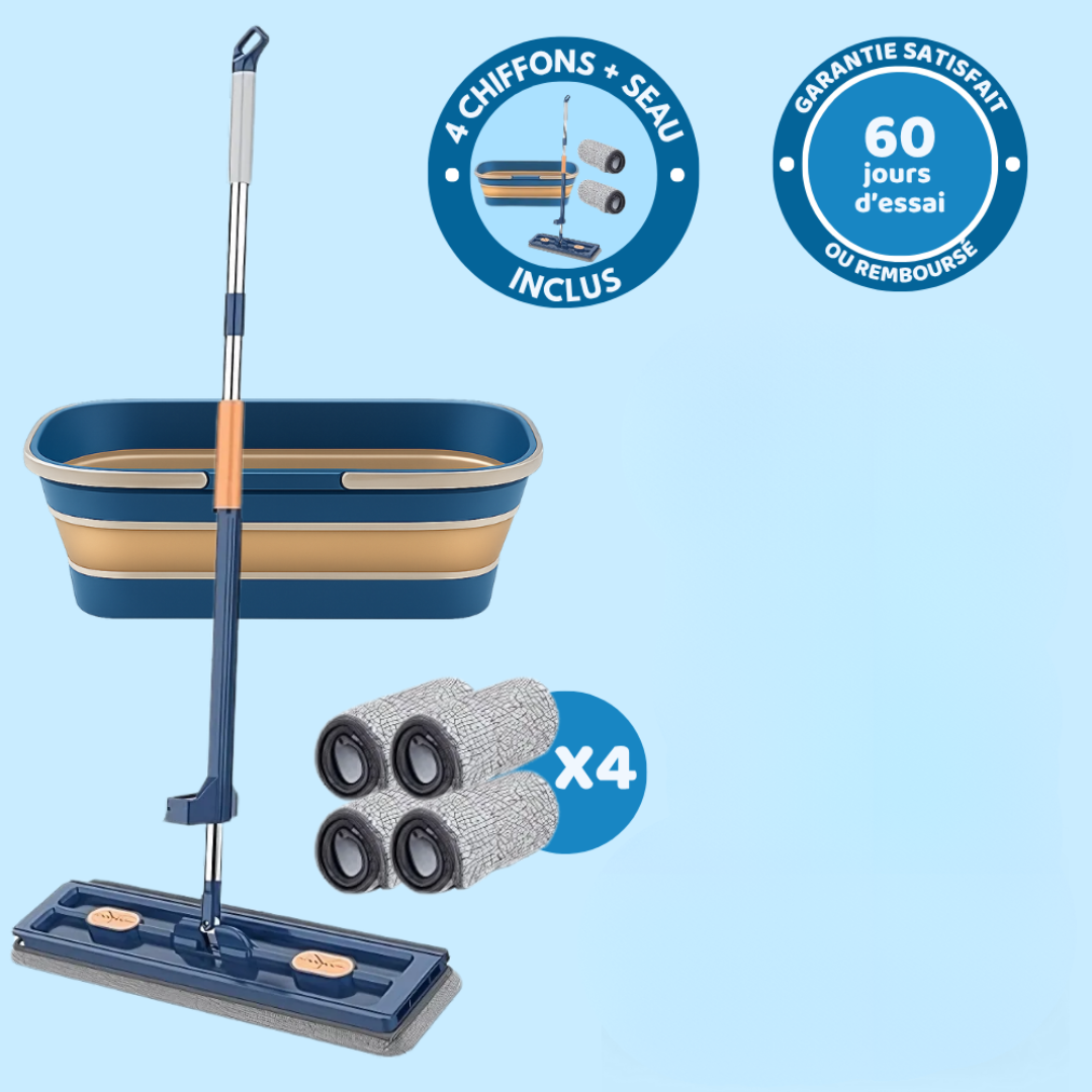 Il secchio a doppio scomparto consente di risciacquare e centrifugare con facilità. Il mop in microfibra ultra assorbente trattiene sporco, liquidi e polvere senza lasciare aloni. Ideale per tutte le superfici: piastrelle, parquet, laminato o linoleum.