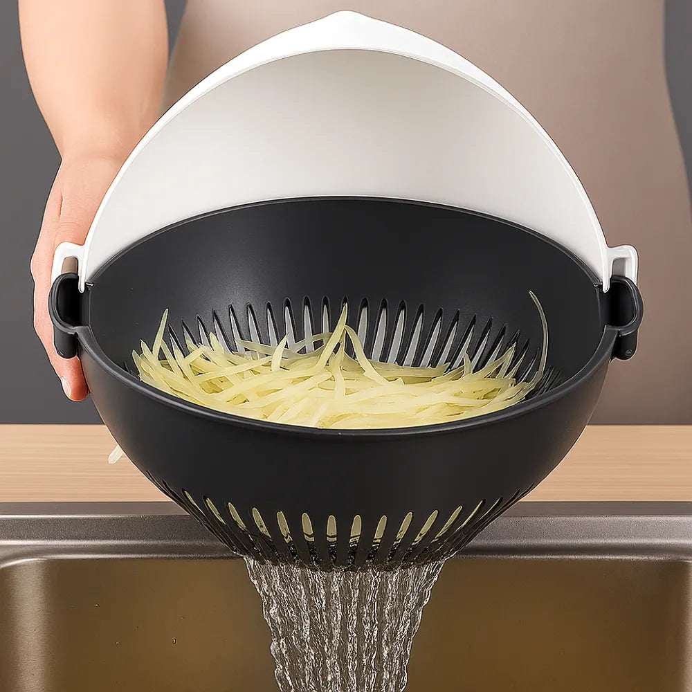 Questo ingegnoso affettaverdure ha tutto ciò che serve per preparare rapidamente le verdure. Consente di grattugiare, affettare e scolare direttamente nella stessa ciotola, senza alcuno sforzo. L'impugnatura antiscivolo garantisce una presa salda durante l'uso e le lame in acciaio inossidabile tagliano con precisione. Compatto e leggero, diventerà sicuramente un elemento essenziale di ogni cucina ben organizzata.