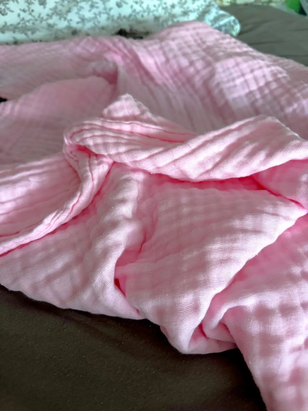Questa coperta in mussola combina morbidezza e leggerezza per un comfort ineguagliabile. Realizzata in cotone naturale di alta qualità, avvolge delicatamente la pelle lasciando traspirare il tessuto. La sua consistenza morbida ed elastica la rende ideale per rilassarsi, leggere o semplicemente per riscaldarsi nelle serate più fredde.