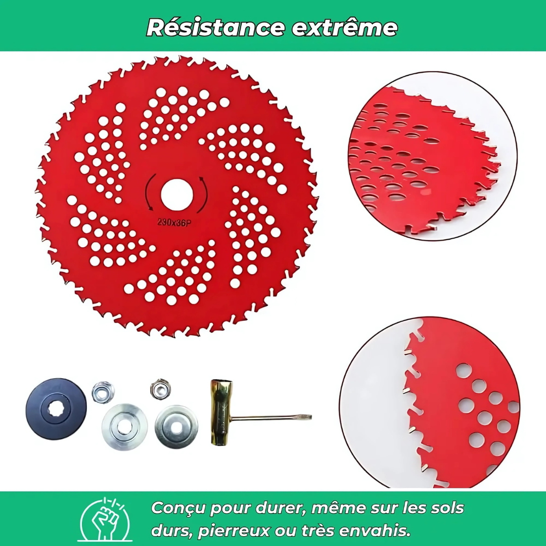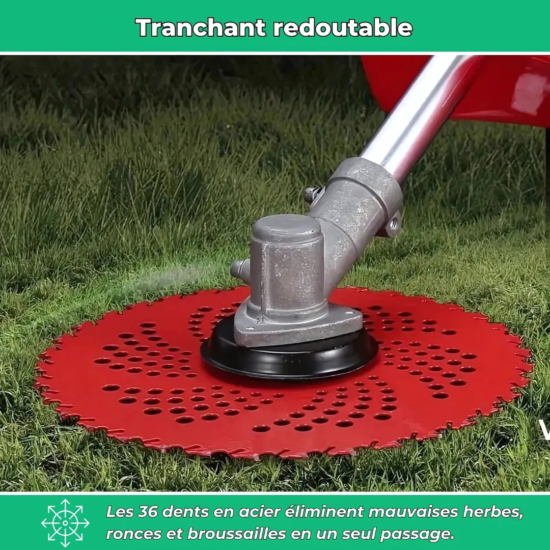 Progettato per rimuovere efficacemente erba alta, sterpaglie e piccoli arbusti, questo disco si adatta alla maggior parte dei decespugliatori. Grazie al suo design perforato, taglia in modo fluido e preciso, anche su terreni irregolari.