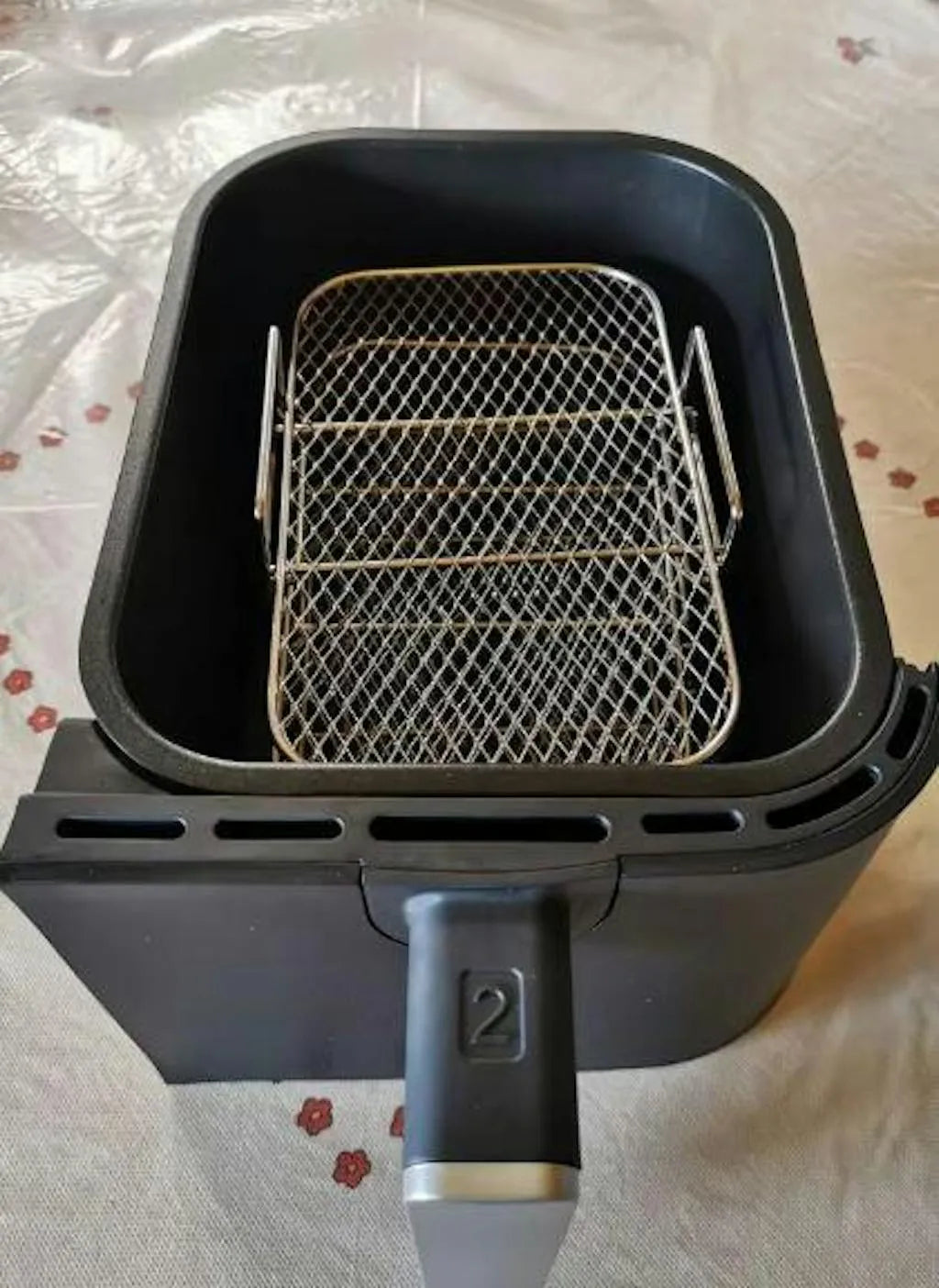 Con questo pratico cestello a 3 scomparti è possibile utilizzare al meglio la macchina per friggere. La dimensione extra della frittura consente di friggere in modo uniforme patate, carne o pesce, senza che le strisce si trovino in posizione orizzontale. In questo modo si ottiene un risultato di alta qualità con molto meno olio.