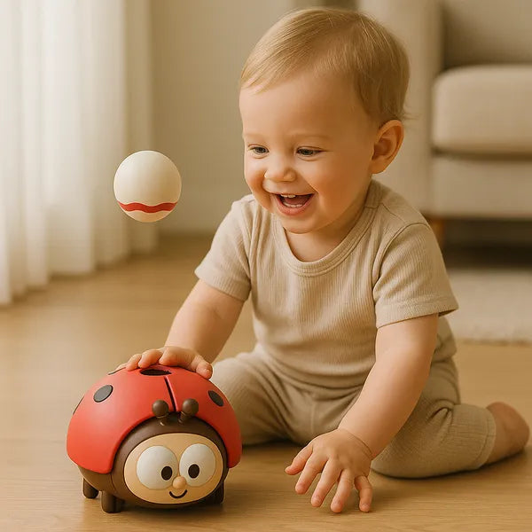 Progettato per favorire lo sviluppo sensoriale, questo giocattolo aiuta i bambini a sviluppare la motricità fine e la concentrazione. Manipolando la coccinella e guardando la palla che gira, il bambino migliora la coordinazione occhio-mano e scopre le relazioni di causa-effetto. Ideale per giocare da solo o per condividere momenti divertenti con i genitori.