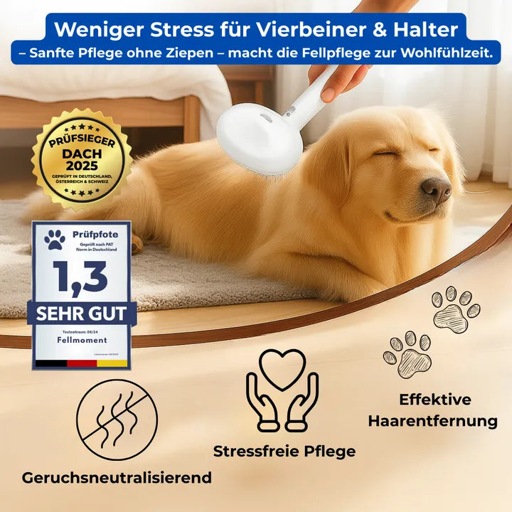 Dank der sanften Dampf-Funktion und der abgerundeten Borsten genießen Haustiere eine entspannende Pflege, während unangenehme Gerüche gemindert werden. Das Ergebnis: ein glänzendes, weiches Fell und weniger Haarverlust im Alltag.