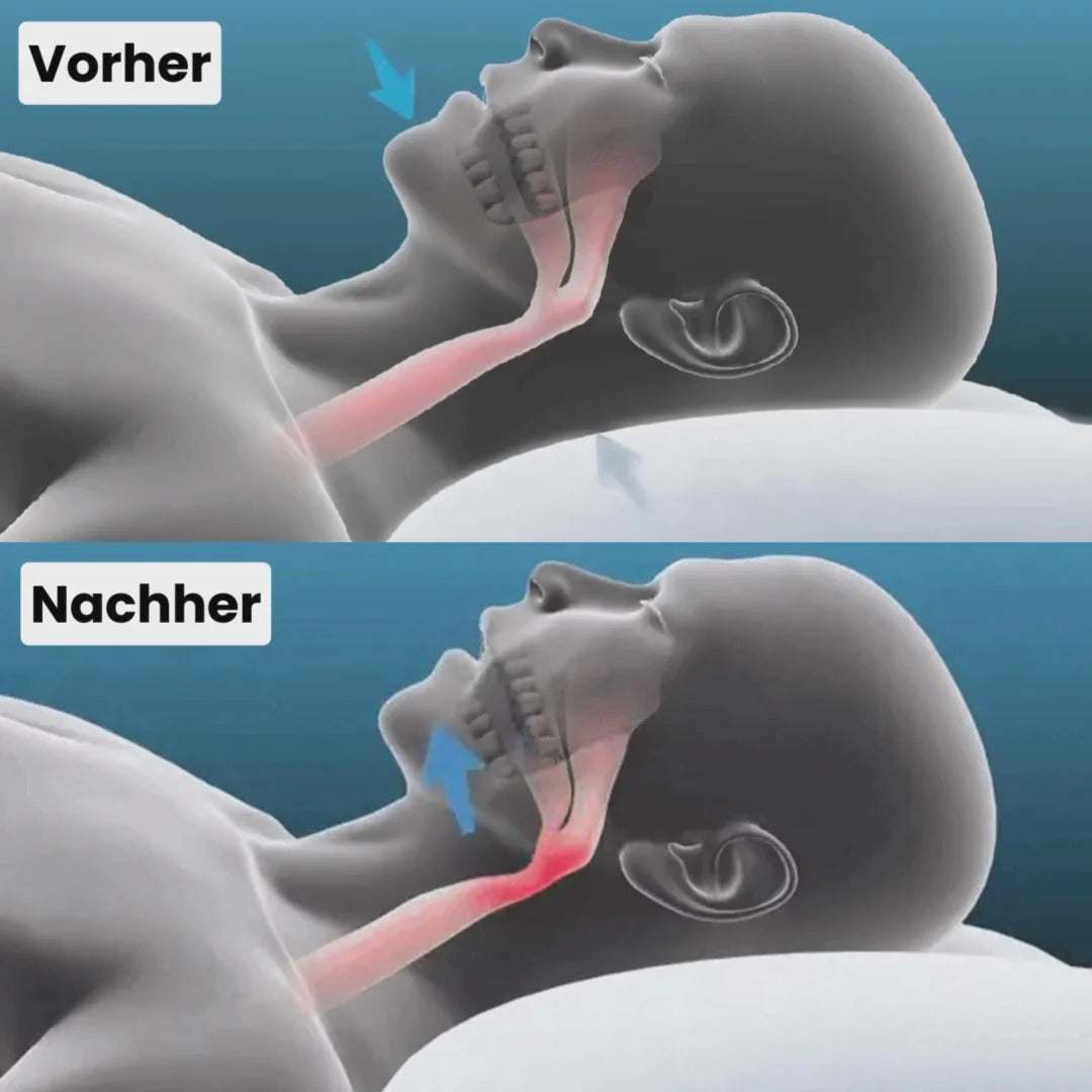 Dieses innovative Mundstück reduziert Schnarchen, indem es den Atemweg während des Schlafs offenhält. Durch die sanfte Vorverlagerung des Unterkiefers wird der Luftstrom verbessert und Vibrationen im Rachenraum minimiert. Das Resultat: erholsamer Schlaf für dich – und ruhige Nächte für deinen Partner.