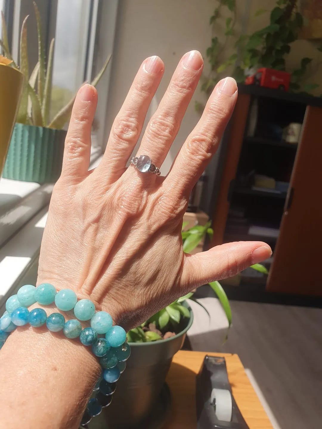 Reconnue pour ses bienfaits apaisants, l’aigue-marine est associée à la confiance, à la clarté d’esprit et à la douceur des émotions. Porter cette bague, c’est ajouter une touche de lumière à sa tenue tout en profitant des vertus de la pierre.