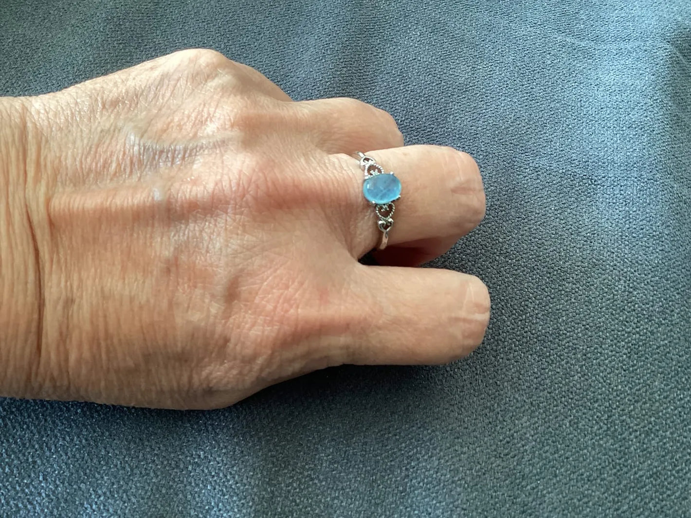 Cette bague raffinée en pierre d’aigue-marine diffuse une sensation de calme et d’harmonie. Sa teinte douce rappelle la transparence des eaux claires, idéale pour apporter équilibre et élégance au quotidien.